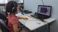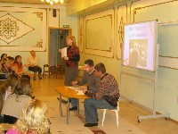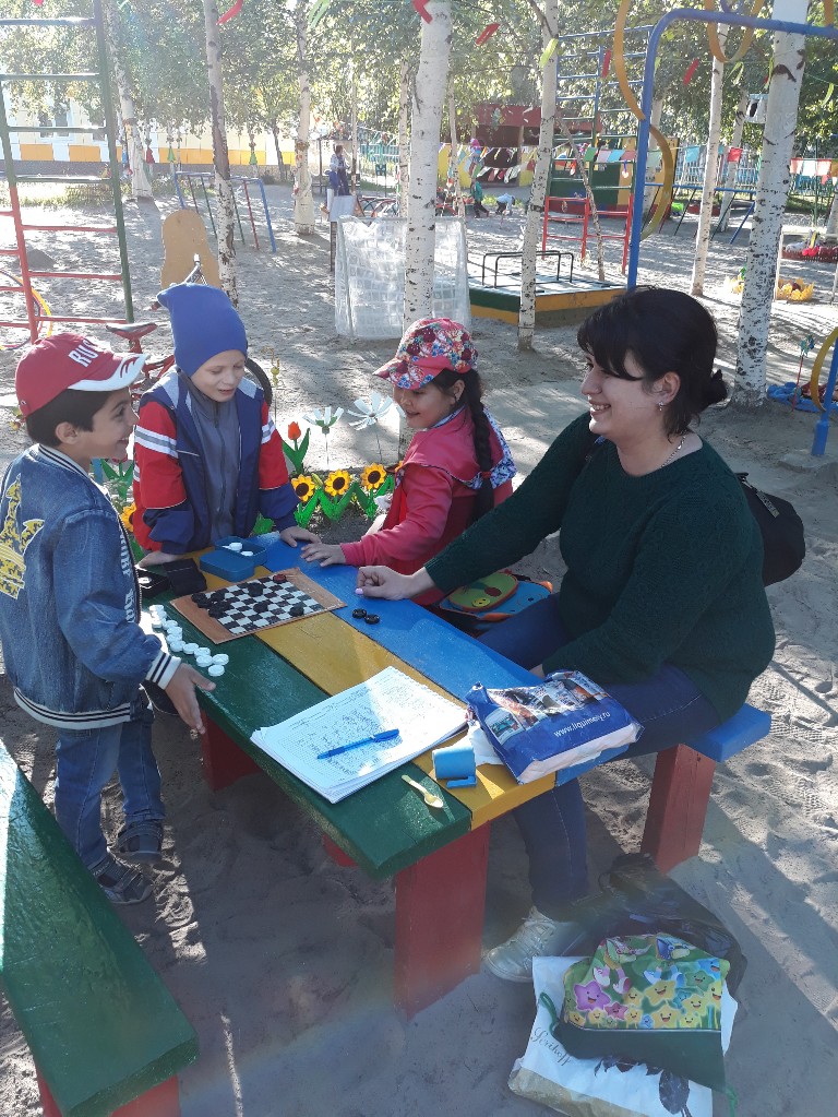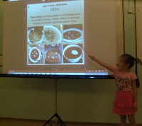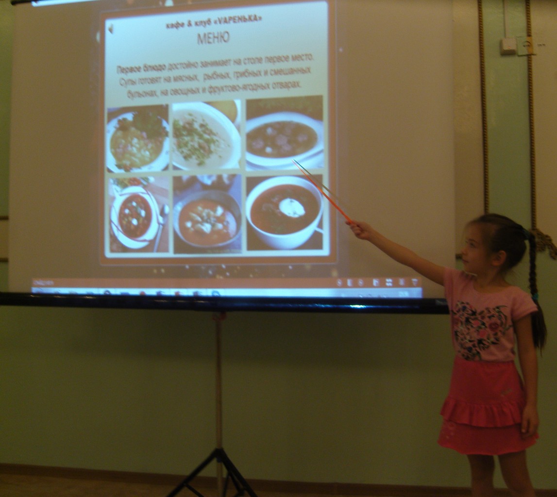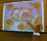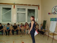 Варя К. во время Недели здоровья рассказывает ребятам о своей спортивной секции |