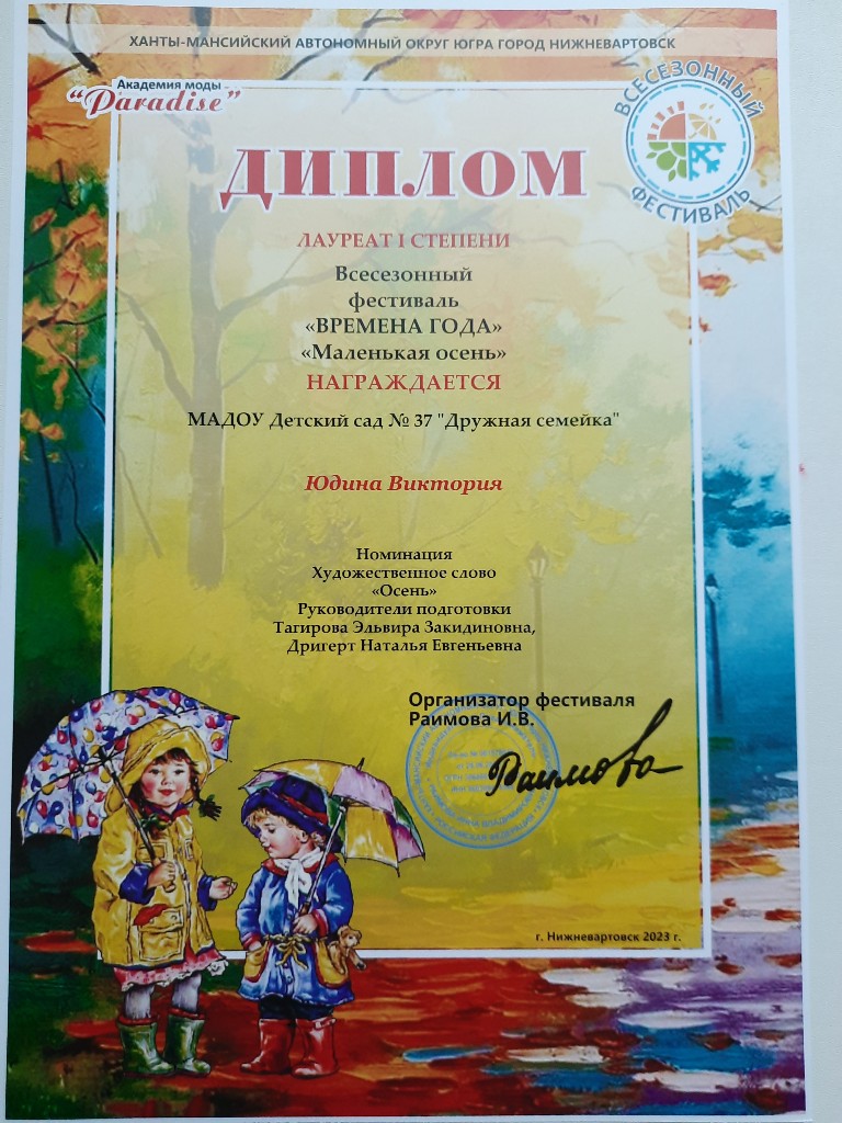 Всесезонный Городской фестиваль "Маленькая осень", номинация "Худож.слово"