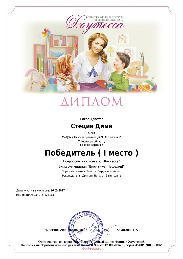 Диплом победителя I место,