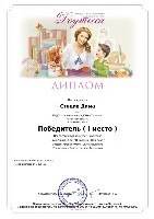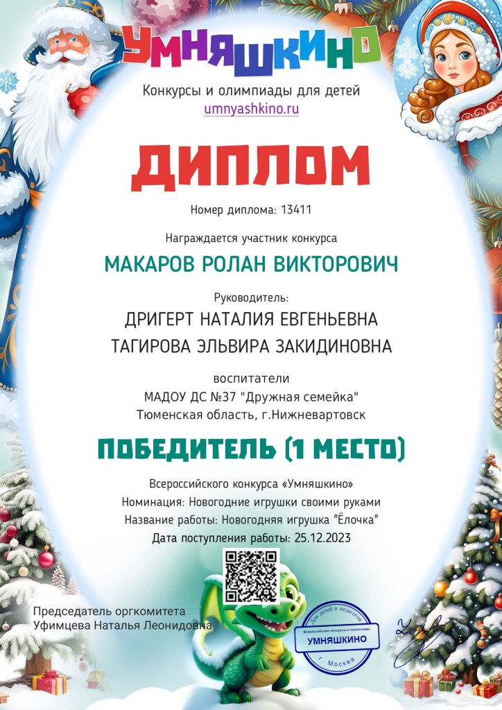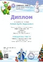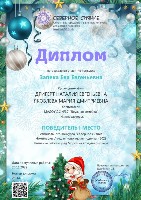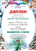 Диплом победителя I место, Всероссийский конкурс "Умняшкино", номинация "Новог.игрушки своими руками",