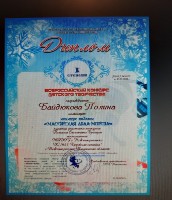 Диплом призера 2 м., Всероссийский конкурс талантов "Зимняя сказка" , Андреева К., янв. 2924г |